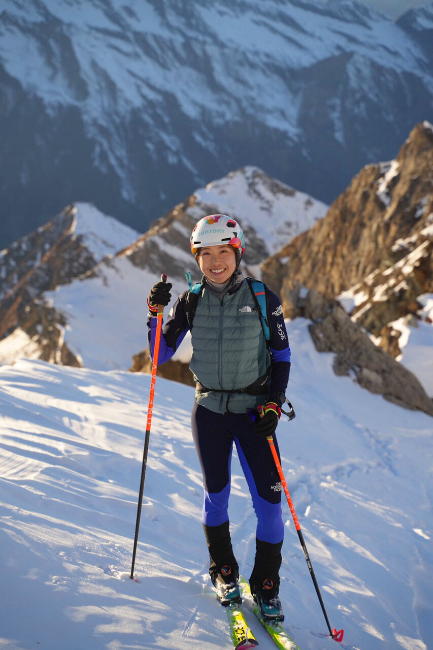 当然最初は練習会とかに誘ってもらえるものだと思っていたのですが、いきなり大会に誘われて。スタートの10分前くらいに道具の操作を教わって、「行ってこい!」みたいなかなり強引なデビューでしたが、大好きな大自然のなかでスキーで登って下って…「この競技は私に合っているかも」と感じ、夏はスカイランニングやトレイルランニングをして、冬はスキーモをすれば一年中、山で過ごせるなと思いました。